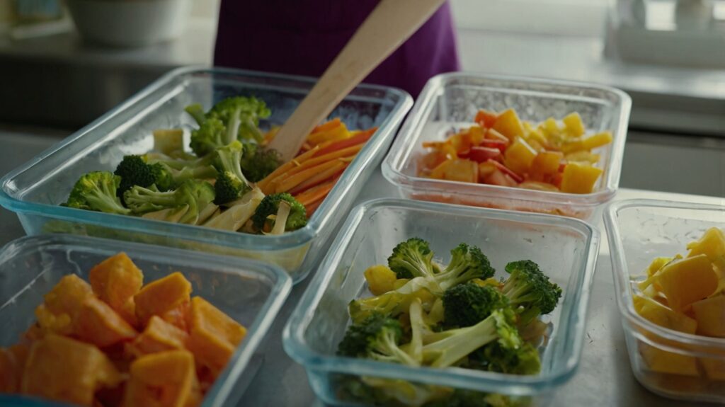 Dedique duas ou três horas do domingo para lavar e cortar vegetais, cozinhar grãos em maior quantidade e preparar proteínas que podem ser congeladas em porções individuais. Esse investimento de tempo resulta em uma semana com escolhas alimentares mais conscientes.